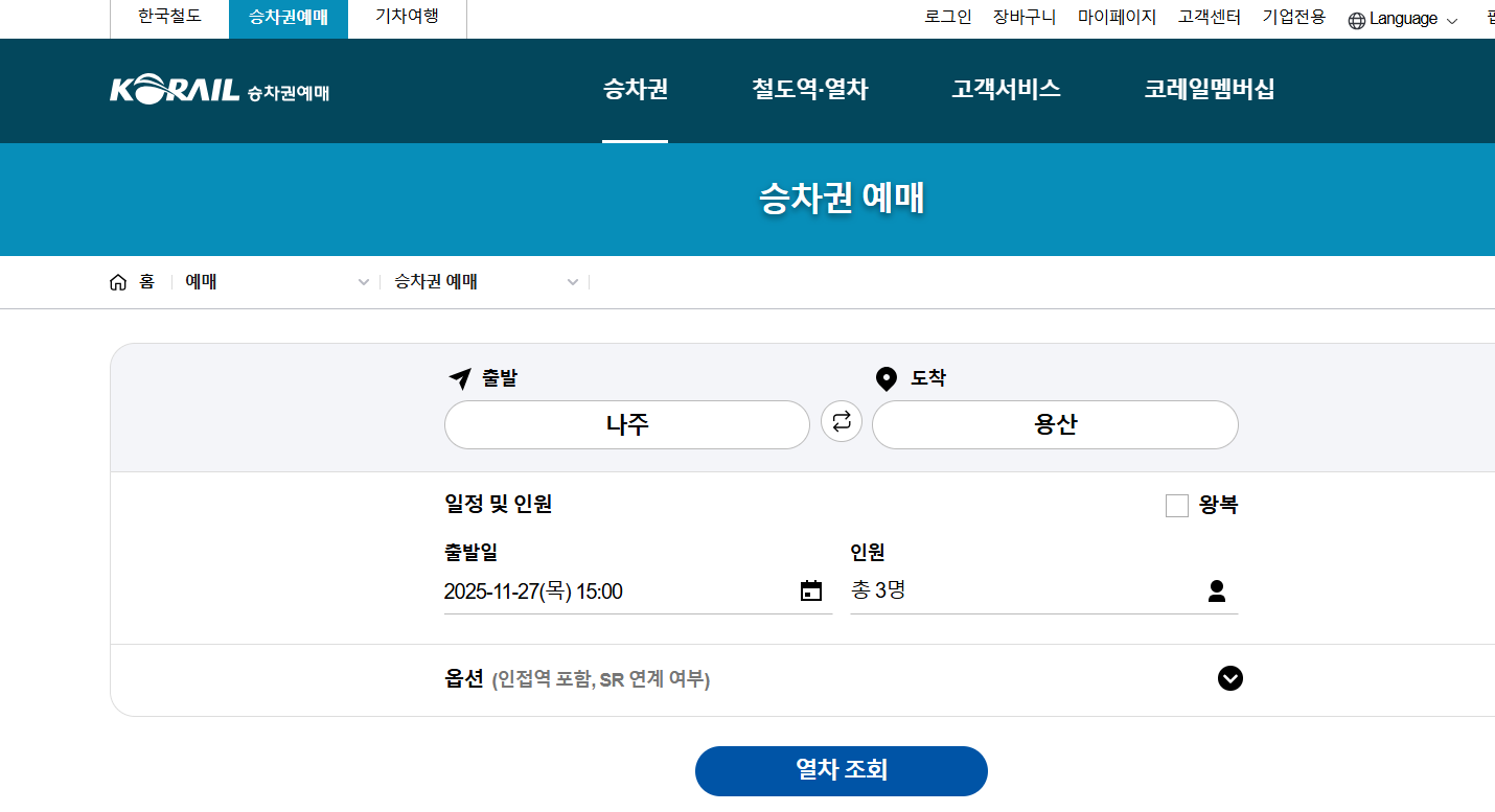 출처: 코레일 예약 페이지 캡처